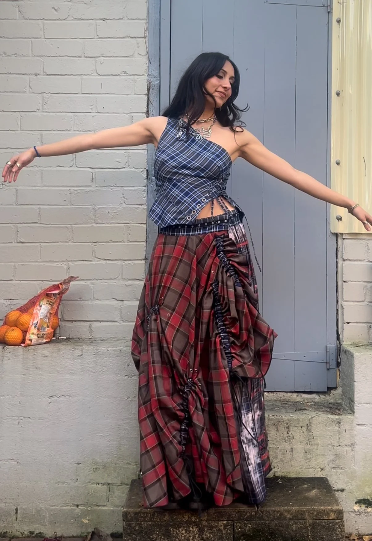 E: Grey & White Tartan Set